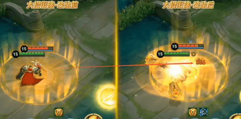 这次并没有直接拿掉亚瑟的大招后摇,而是增加了技能衔接流畅度,大招使用后在后摇过程使用12技能要比正式服快上一些,也相当于用技能取消了大招后摇,间接性解决了大招自控的问题。